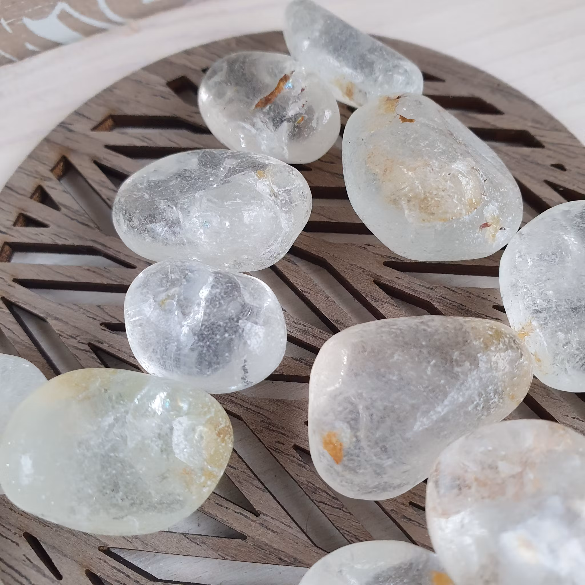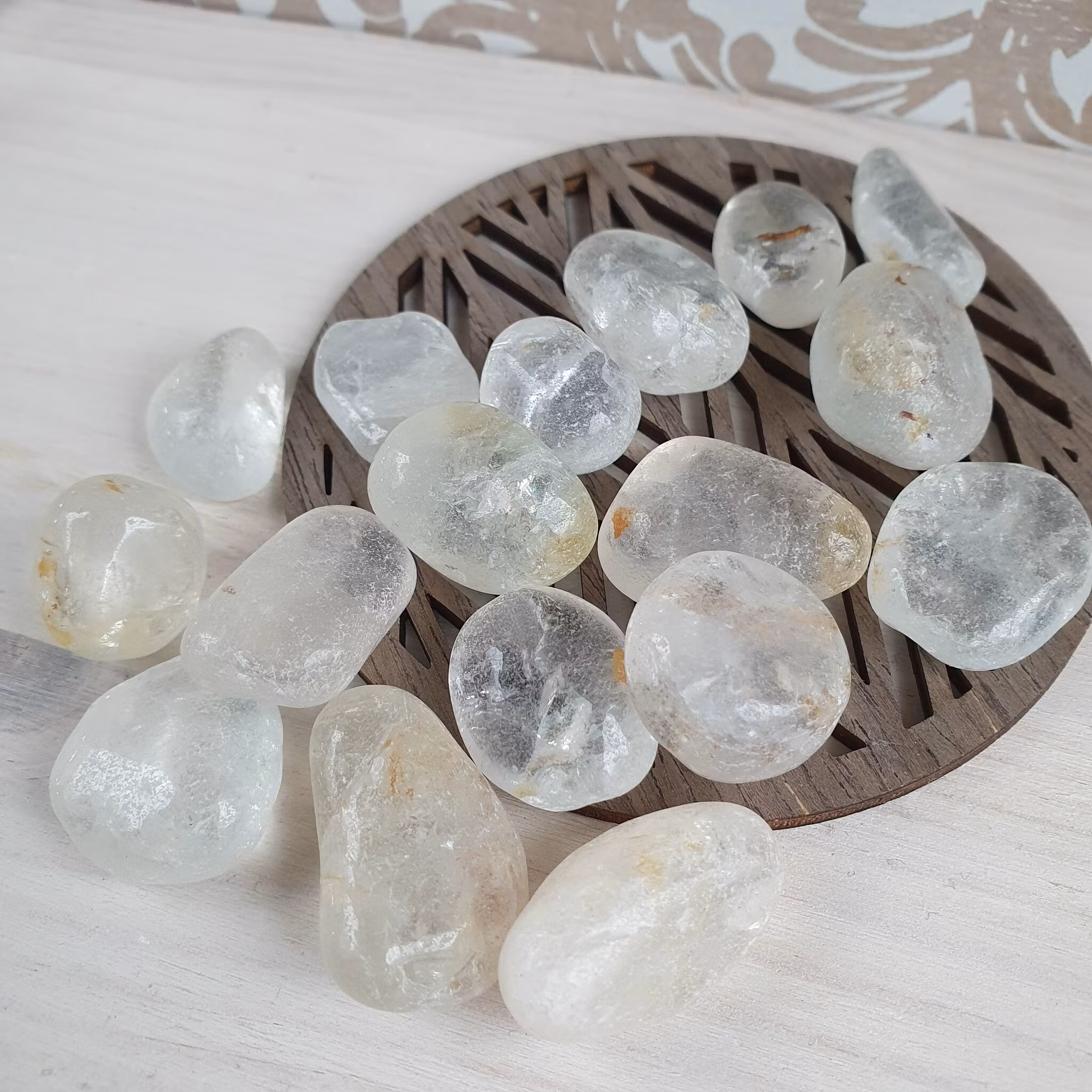 Trumlad topas, stenen är av fin kvalitet men trumlingen är inte den bästa. Så de är matta i ytan men ändå mjuka, utan vassa naggar. Vi väljer en fin sten åt dig.