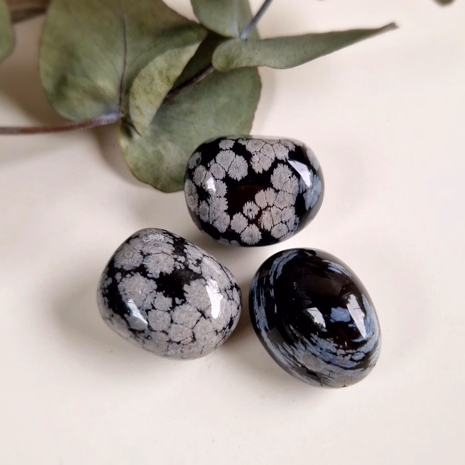 Härlig trumlad bit av Snöflingeobsidian. Vi väljer en fin sten åt dig.
