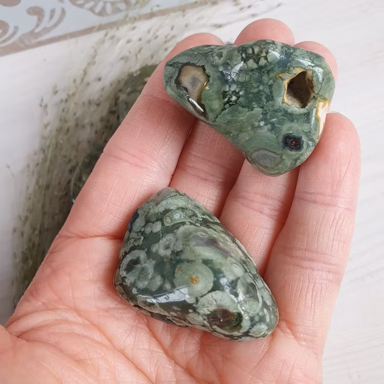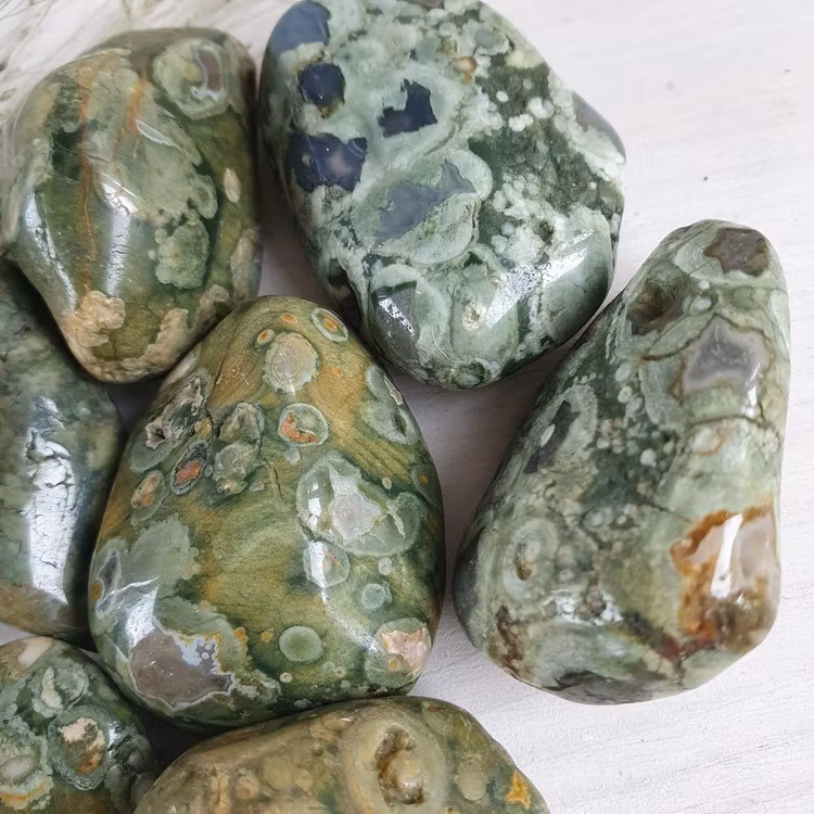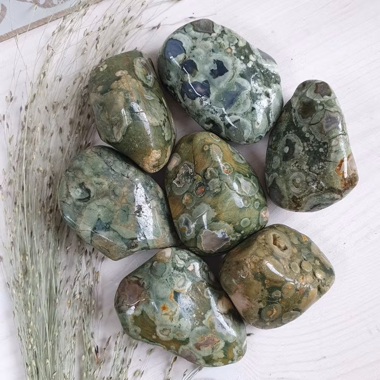 Fina trumlade bitar av Rhyolit i A kvalitet. Vi väljer en fin sten åt dig.