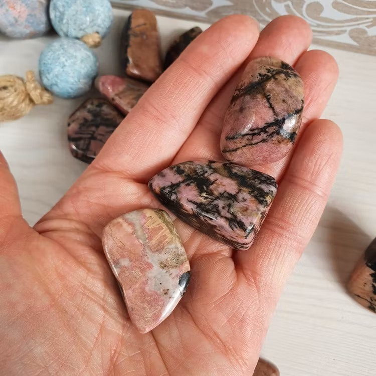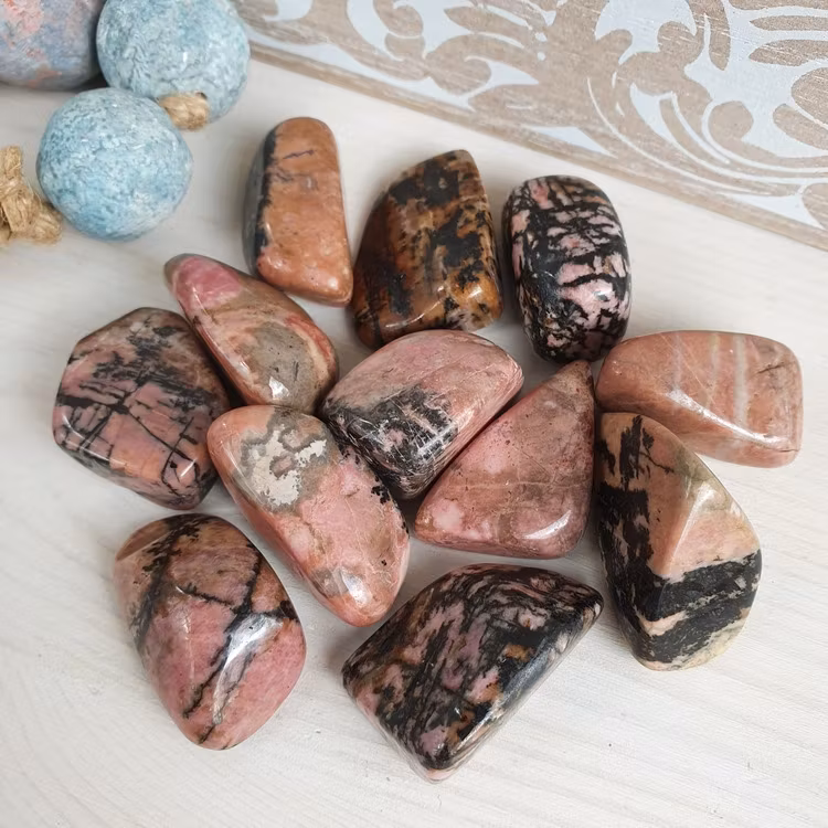 Trumlade bitar av Rodonit, vi väljer en fin sten åt dig.