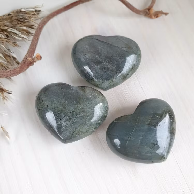 Fint puffigt hjärta av Labradorit. Vi väljer ett fint hjärta åt dig.
