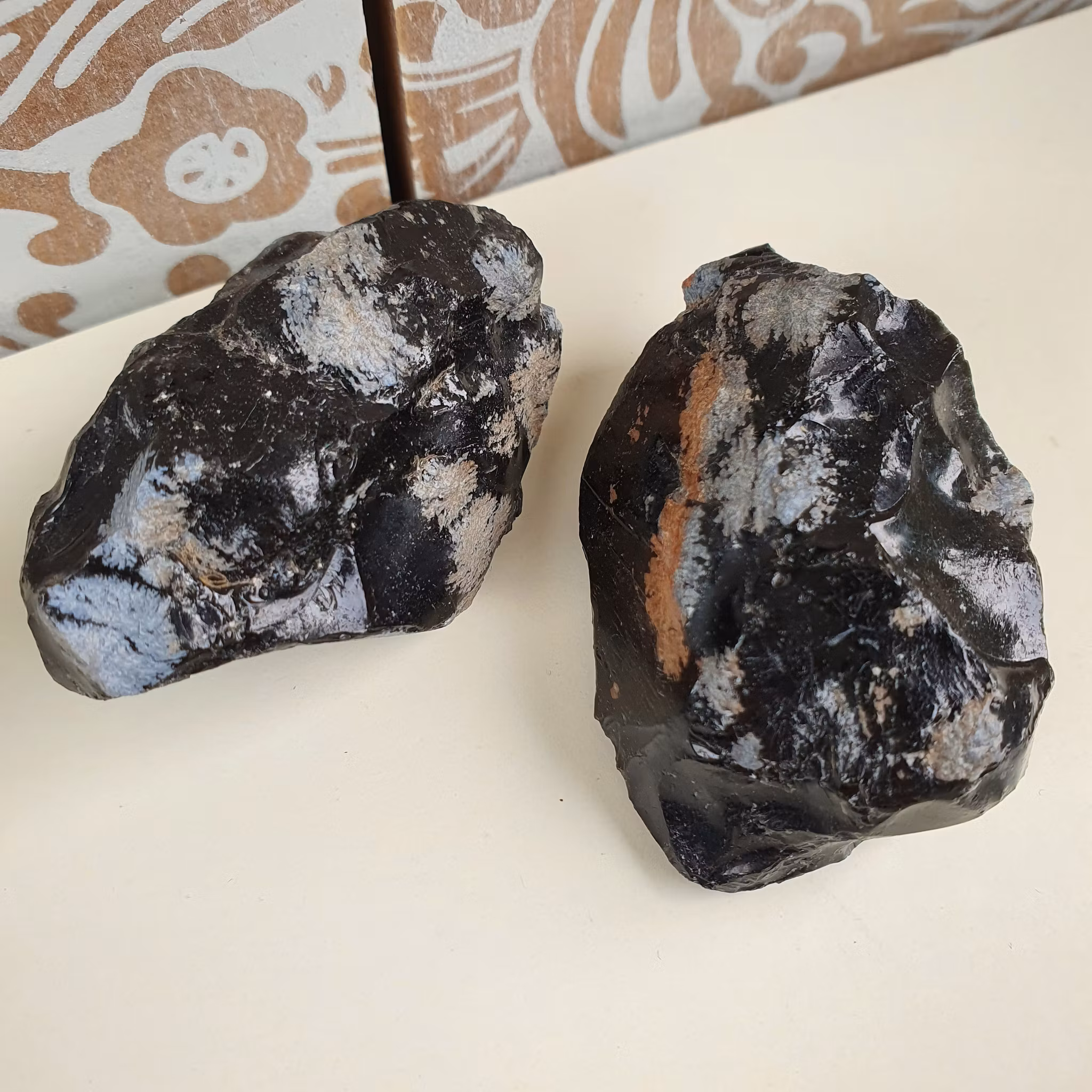 Rå bit av Snöflingeobsidian. Vi väljer en fin sten åt dig.