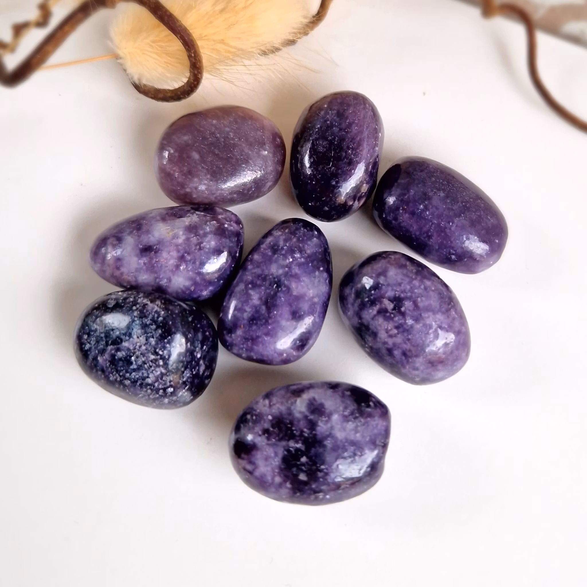 Trumlad bit av Lepidolit. Vi väljer en fin sten åt dig.