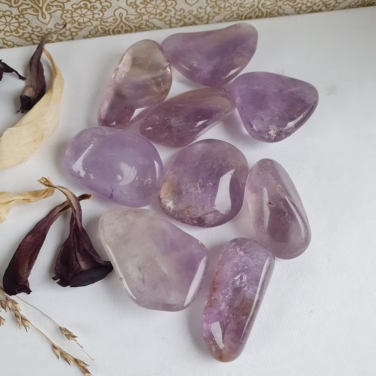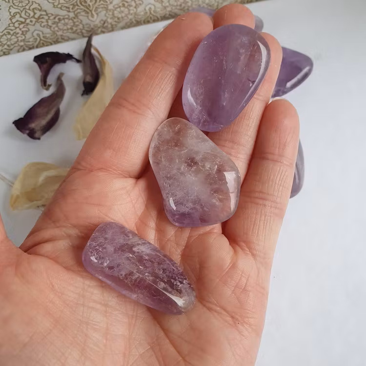 Trumlade bitar av Ametist från Brasilien. Naturliga ojämnheter förekommer. Vi väljer en fin sten åt dig.