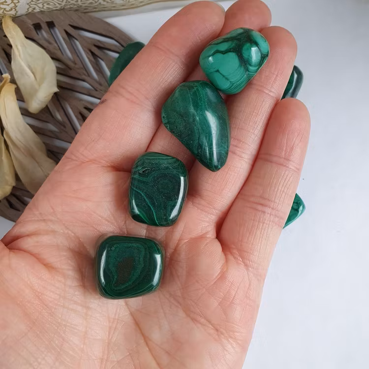 Fina trumlade bitar av malakit. Vi väljer en fin sten åt dig.