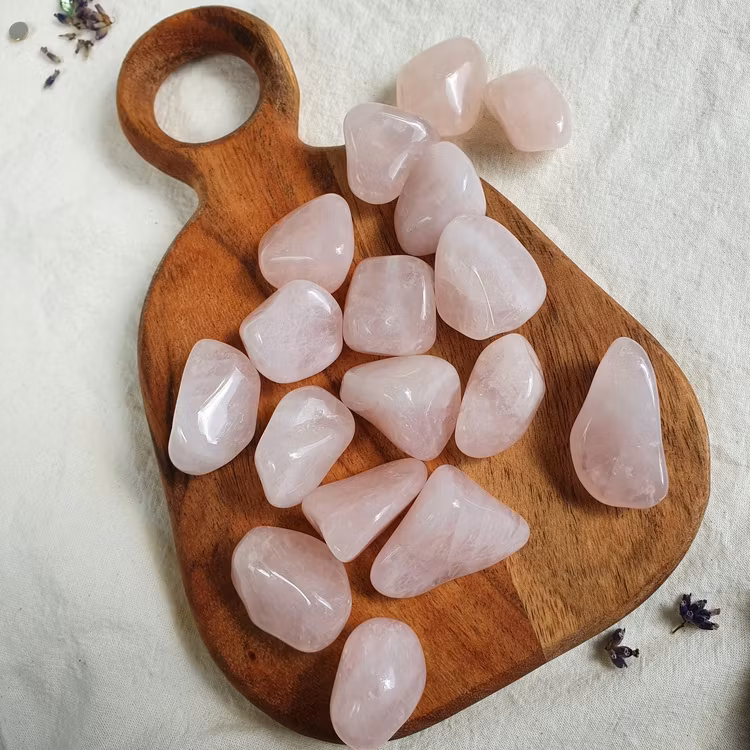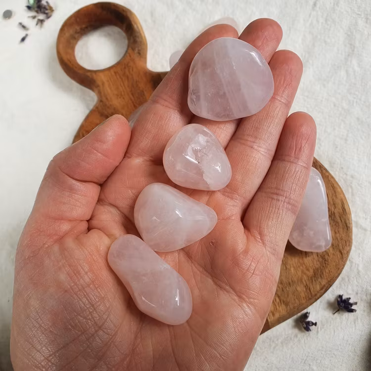 Fin trumlad rosenkvarts i A kvalitet. Vi väljer en fin sten åt dig.
