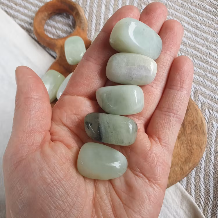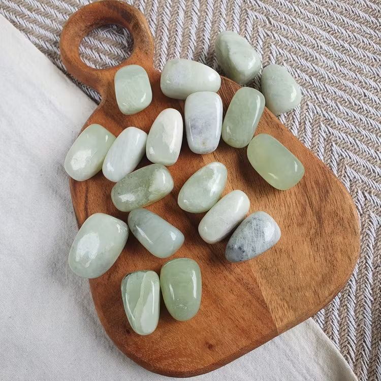 Fina trumlade bitar av Serpentin. Oftast så används tradenamet "New Jade" för denna sten men det är missvisande, därför väljer jag att använda dess äkta identitet. Vi väljer en fin sten åt dig.