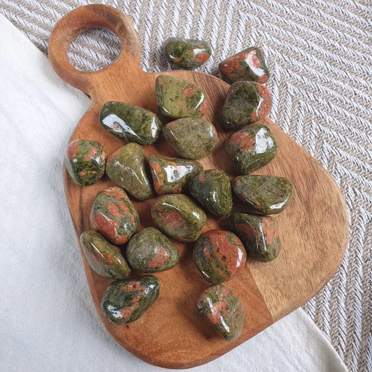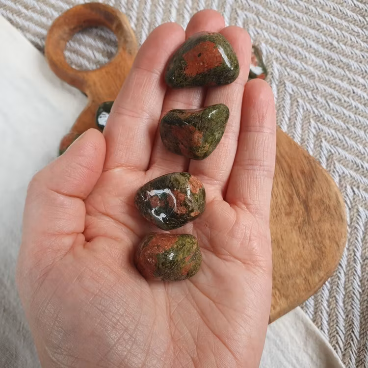 Trumlade fina bitar av Unakit. Vi väljer en fin sten åt dig.