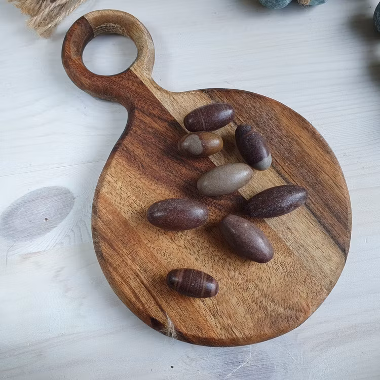 Shiva Lingham är en sten som vanligtvis naturligt formad utav floden Narmada i Indien som är en av Indiens sju heliga floder. Denna trumlade variant är från större skadade bitar som trumlats.