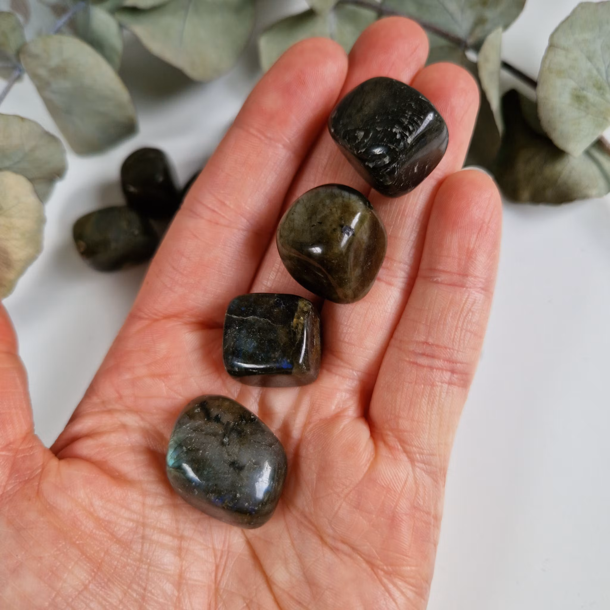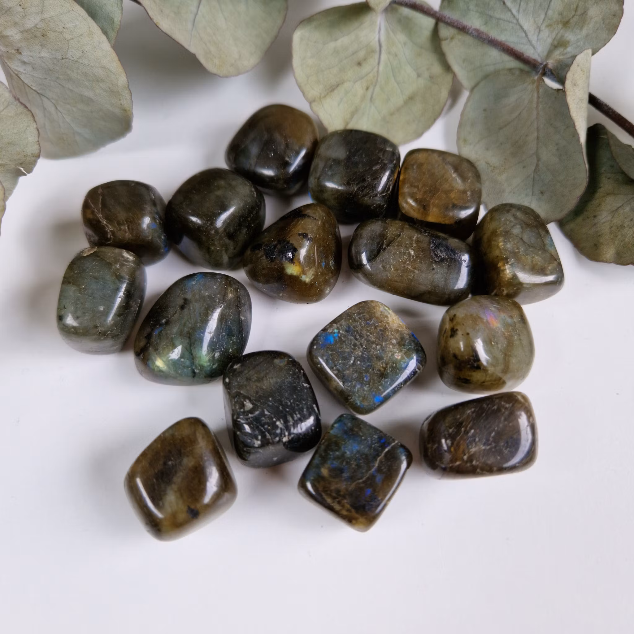Trumlad bit av Labradorit. Vi väljer en fin sten åt dig.