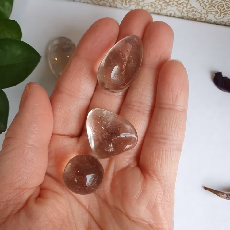 Fina ljusa bitar av rökkvarts i AA kvalitet.