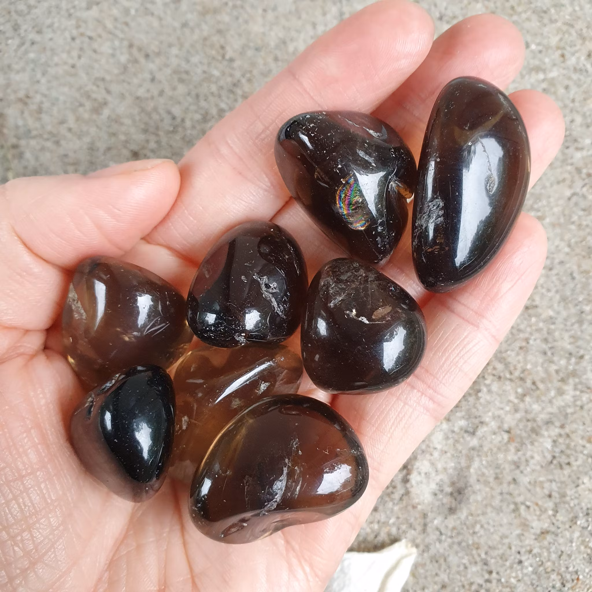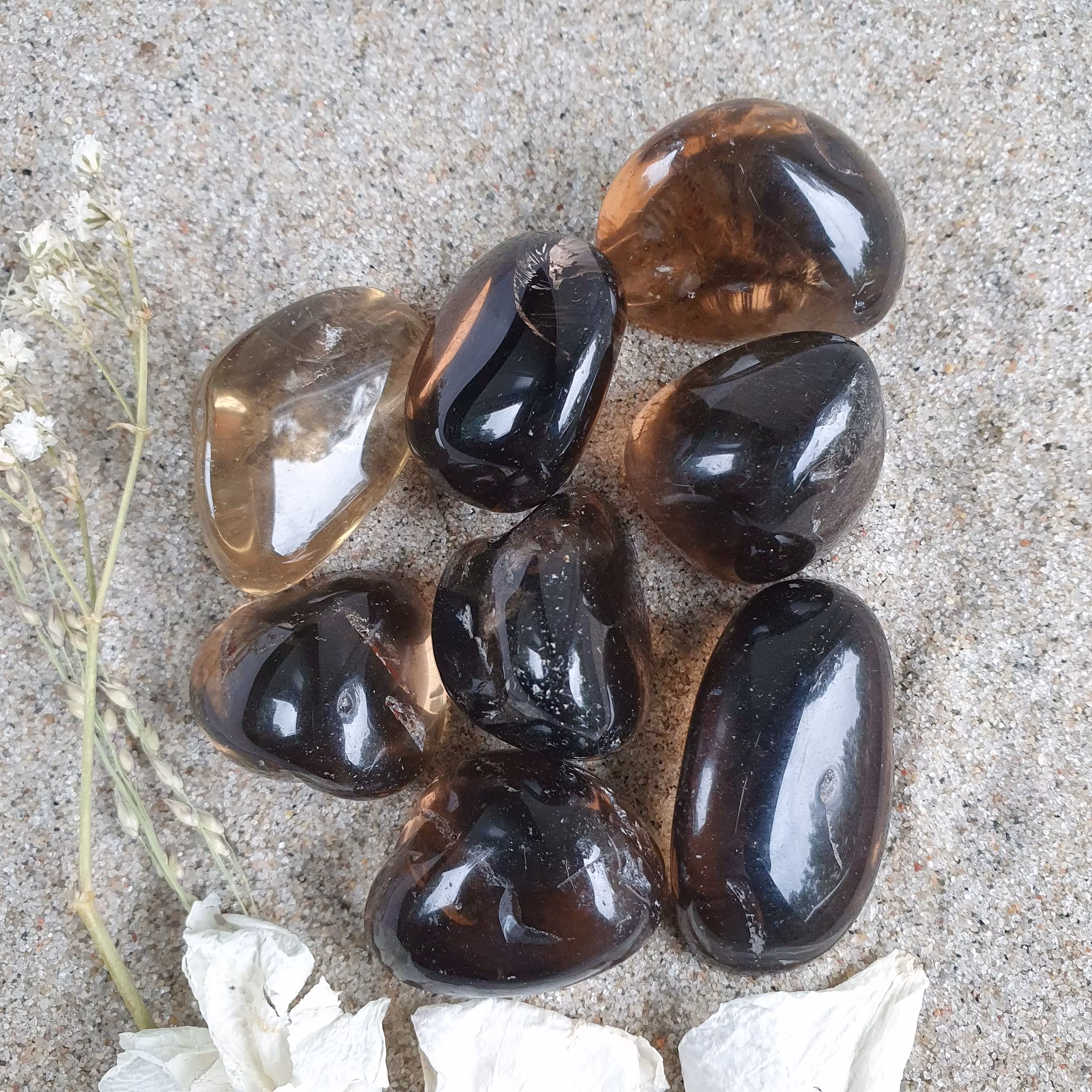 Fina mörka bitar av rökkvarts i B kvalitet. Vi väljer en fin sten åt dig.