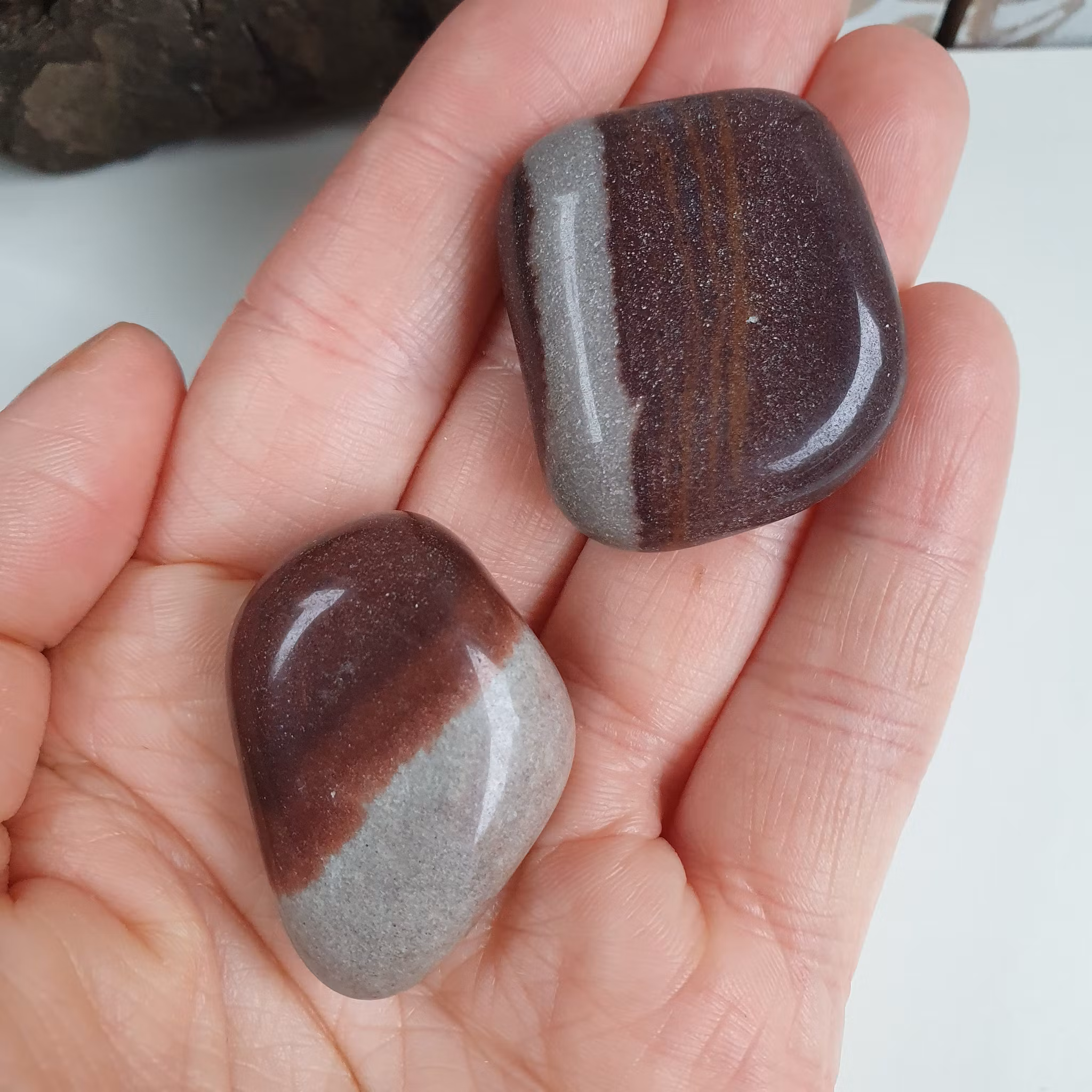 Shiva Lingham är en sten som vanligtvis naturligt formad utav floden Narmada i Indien som är en av Indiens sju heliga floder. Denna trumlade variant är från större skadade bitar som trumlats.
