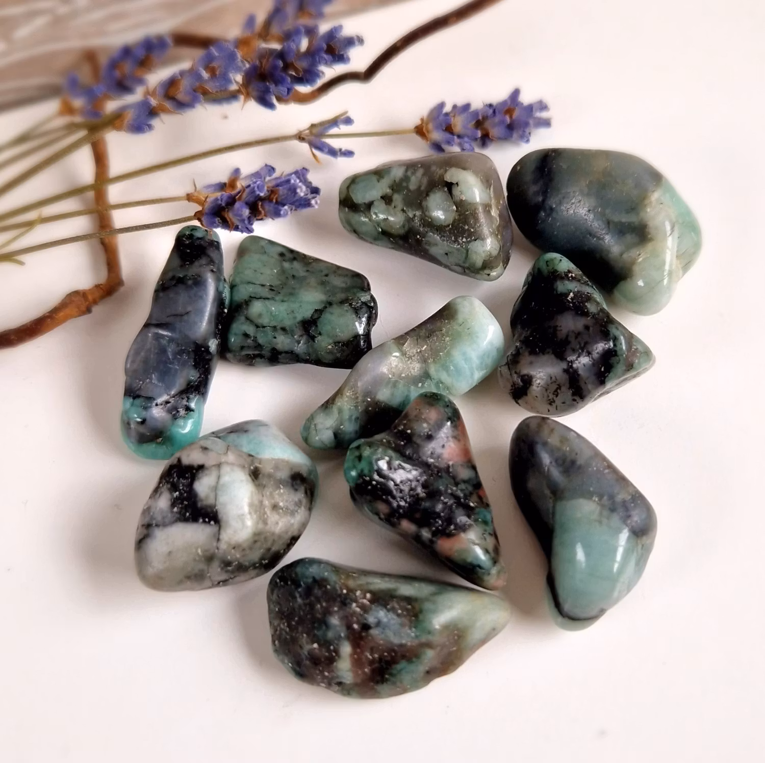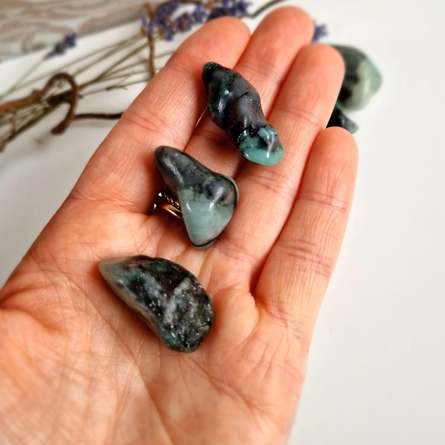 Trumlade små bitar av Smaragd. Vi väljer en fin sten åt dig.