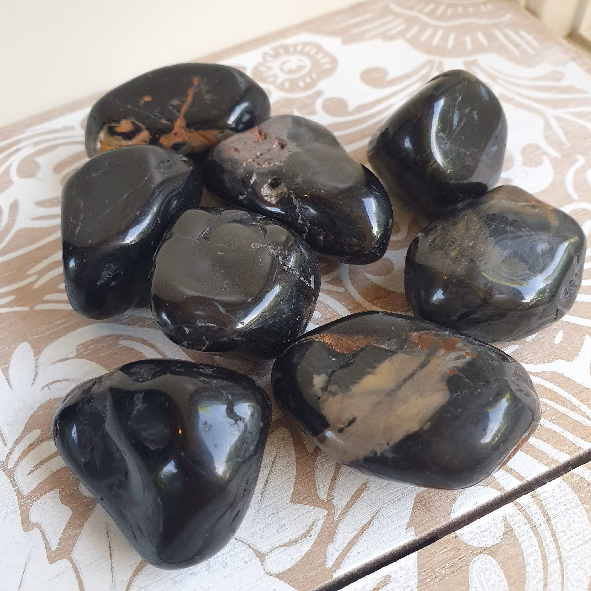 Trumlad fin bit av Svart Onyx, naturliga ojämnheter förekommer. Vi väljer en fin sten åt dig.