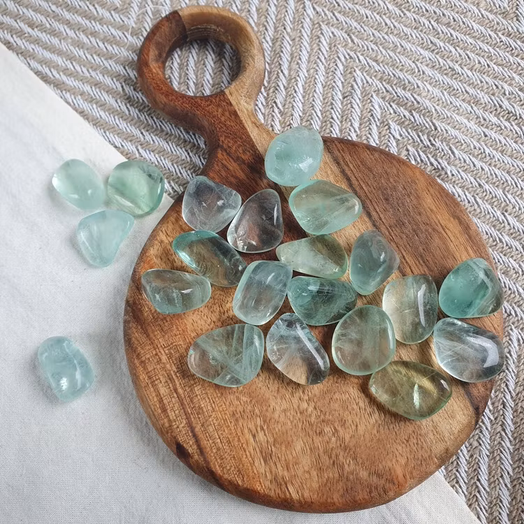 Trumlad grön Fluorit i AA kvalitet. Vi väljer en fin sten åt dig.