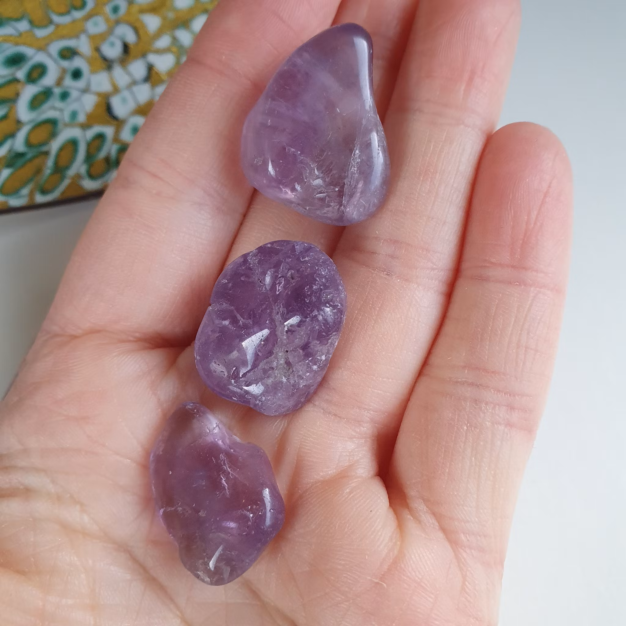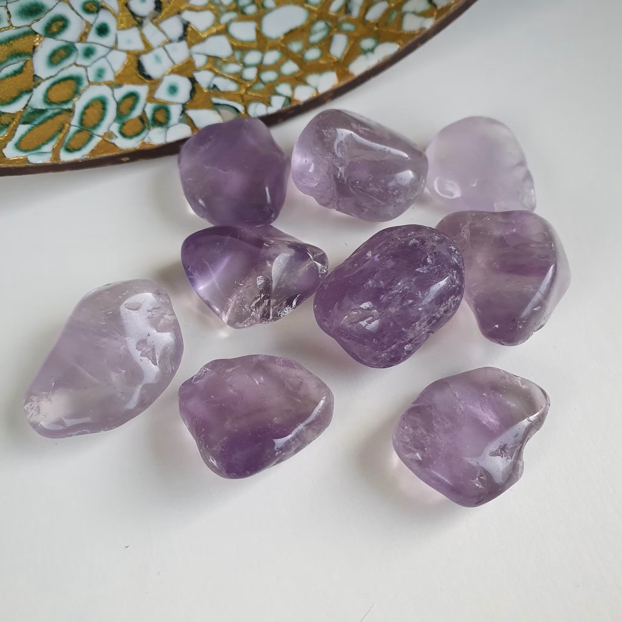 Trumlade små bitar av Ametist i B-kvalitet, i påse om 50 g. För kristallnät, dekoration mm.