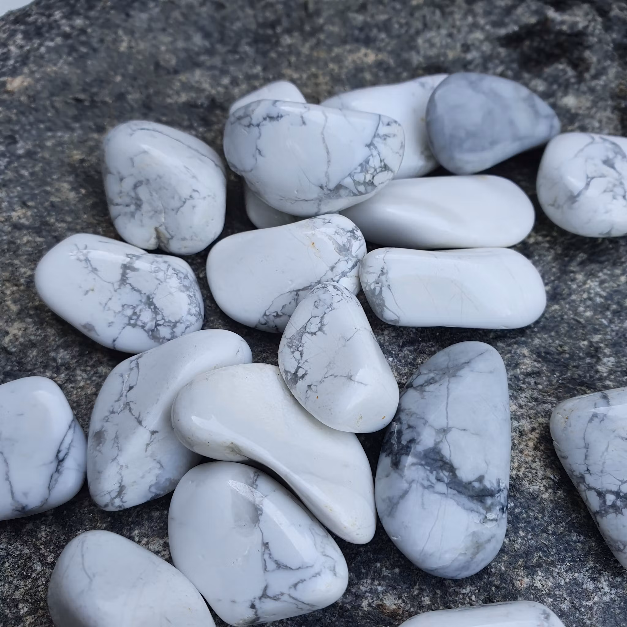 Fin bit av trumlad Howlite . Naturliga ojämnheter kan förekomma. Vi väljer en fin sten åt dig.