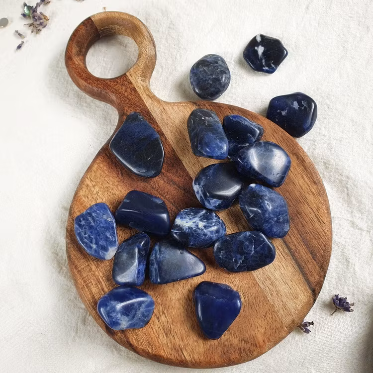 Små fina trumlade bitar av Sodalit. Vi väljer en fin sten åt dig.